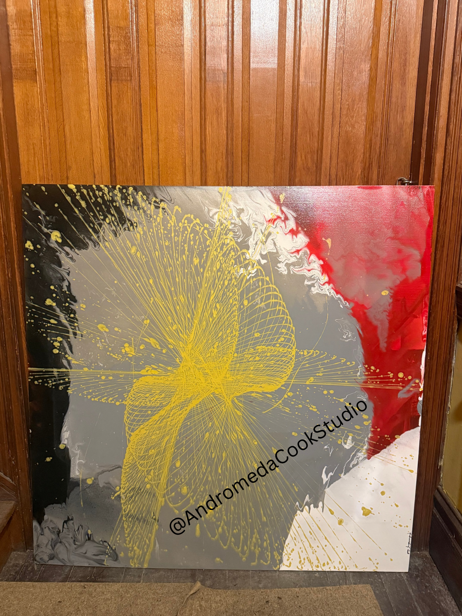 Grace Over Chaos is an original 48 x 48 acrylic painting by Andromeda Cook. Bold movement and layered texture create a powerful visual balance between intensity and restraint.